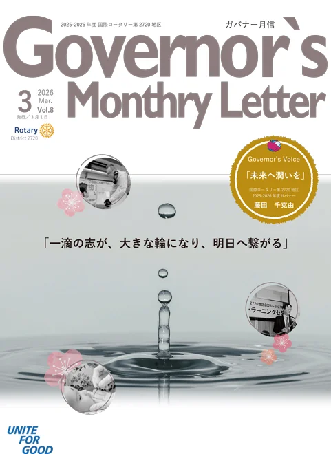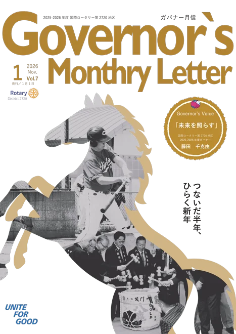 また、会員の皆さまがより一層参加しやすく、活動の意義を実感できるようなクラブ運営にも努めてまいります。例会や各種事業を通じて、互いに学び合い、励まし合いながら、ロータリアンとしての誇りと喜びを分かち合える一年にしたいと願っております。